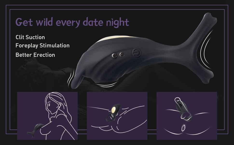 Level up the sexual bond with harder, longer erection and clitoral stimulation! Two-way sexual pleasure is what we want this plaything to achieve; so we present this versatile ring. Hugs snugly around his balls, this penis ring not only provides firmness, but allows the wearer to feel a special pulling pleasure. It boasts with 5 vibration modes, from teasing to full-throttle, adding toe-curling buzz sensations into the steamy game. Moreover, the well-ribbed oval stimulator outfits with 5 suction modes that tantalize her external hot spots with every potent thrust. Add it to the foreplay, teasing each others erogenous parts. Its petite, remotely controllable, fully waterproof, every intercourse with it will be an unparalleled sexual experience!