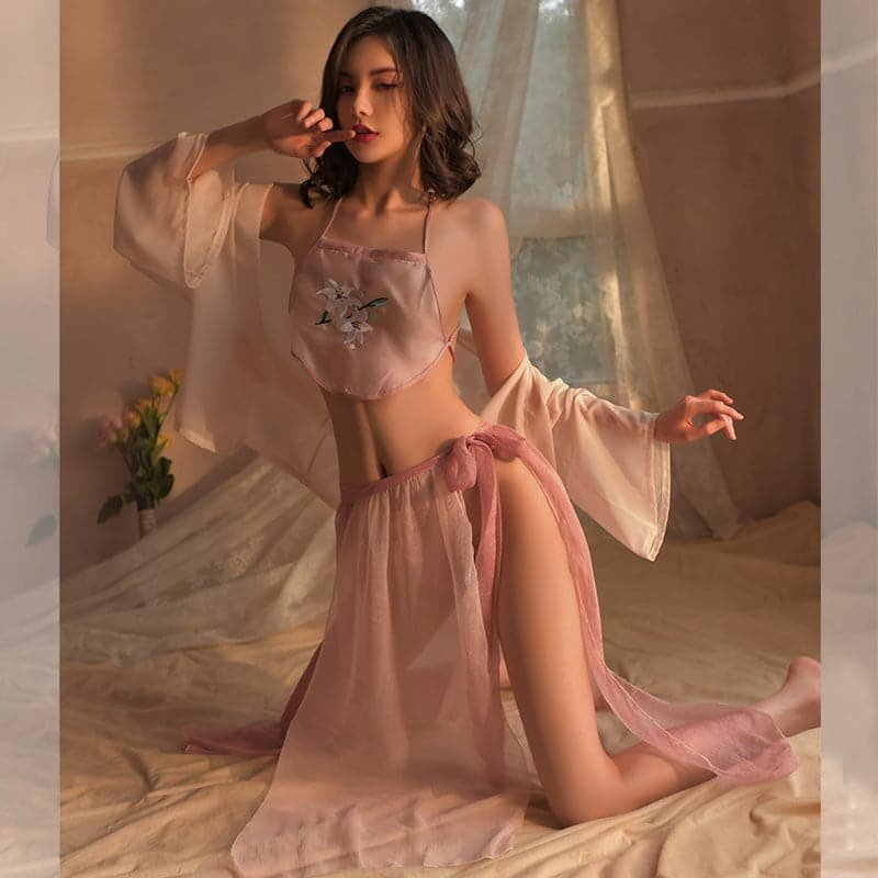 Package: outer blouse + bib + straps skirt + T pants
